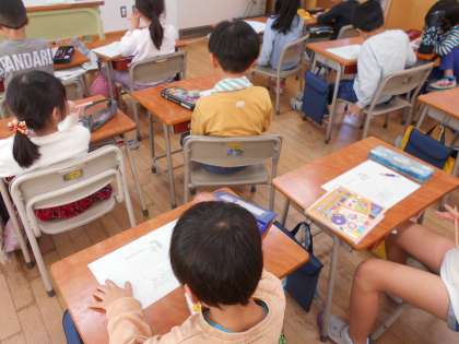 自分たちが育てたあさがおから取れた種を、新しい1年生にプレゼントするためのお手紙を書きました。「水やりをたくさんしたらいいよ」とアドバイスするように書いていたり、「いろいろな色の花が咲くといいね」とあさがおの生長を願うように書いていたりと、それぞれの経験を思い出しながら丁寧に気持ちを込めて書いていました。