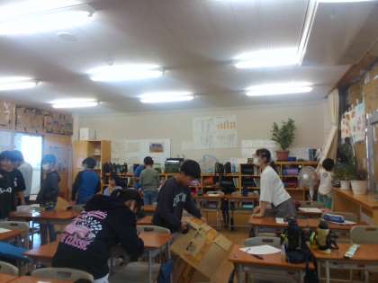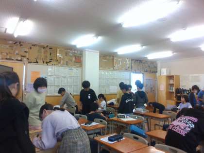 学級で行うハロウイン集会に向けて、学級のみんなで準備をしています。