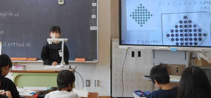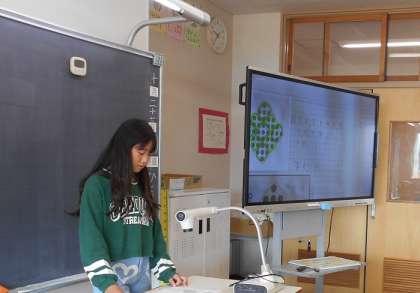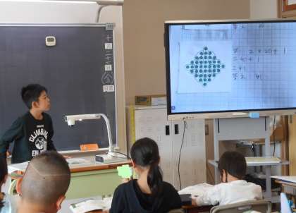 算数科では、計算のきまりを使って正しく答えを求める練習をしています。今日の授業では、いくつか問題を解き、自分がどのような考え方をしたのかをクラスのみんなに伝えました。