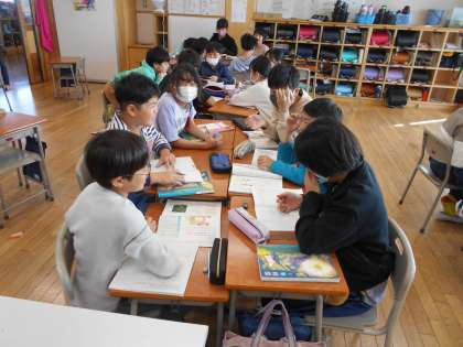 よりよい学校生活に向けて、自分たちの考えをグループでまとめました。積極的に友達と関わろうとしていました。