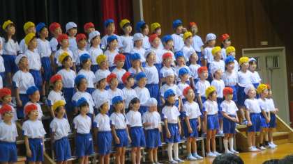 初めての学習発表会でしたが、よい緊張感の中、発表することができました。くじらぐも役と子供たち役に分かれて、様子が伝わるように台詞を言ったり歌を歌ったりしました。子供たちは、おうちの人にがんばっている姿を見てもらえて嬉しそうでした。