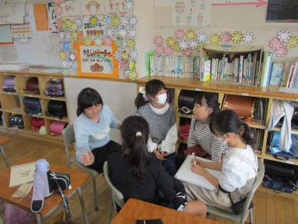 学習発表会を終えて、子供たちの方から「学習発表会お疲れ様会」を開きたいと言われました。その集会の様子を見守っていると、内容の一つ目は「学習発表会での自分たちを褒め合おう」でした。子供たちは、グループになって反省を少しとよかったところをたくさん出し合っていました。その次の内容は「くじ引きによる大抽選会」でした。子供たちなりの「お疲れ様会」がとても微笑ましく感じました。