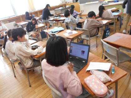 これまでに調べてきたことをどうすれば友達にわかりやすく伝えることができるか学びました。学んだことを基に発表資料を作成していました。