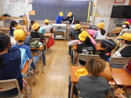 学級の各係が工夫して活動を行っています。今日は、お笑い係が帰りの会でお笑いライブをしました。学級の仲間は笑顔でお笑いライブを見ていました。
