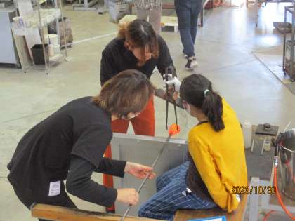 ガラス工房で卒業制作のペーパーウェイトをつくってきました。職員さんに指導してもらいながら製作しました。完成品を見るのが楽しみです。