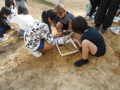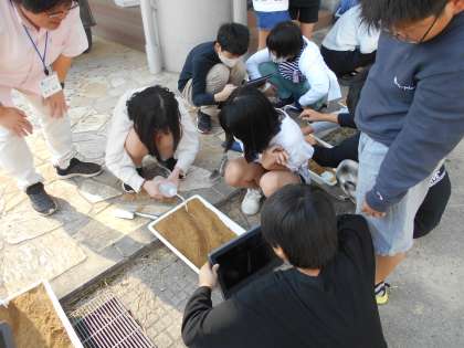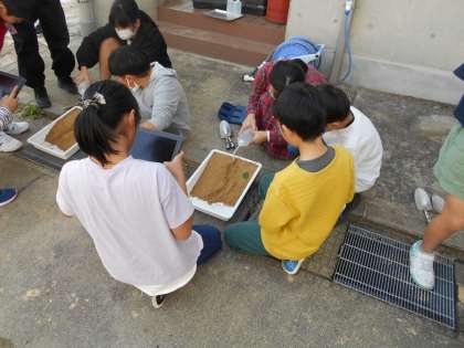 流れる水のはたらきを調べようと、自分たちで実験器具を準備し、実験を行いました。実験の様子を見返すことができるように、クロムブックでその様子を撮影しました。今後の話合い活動に生かしていきます。