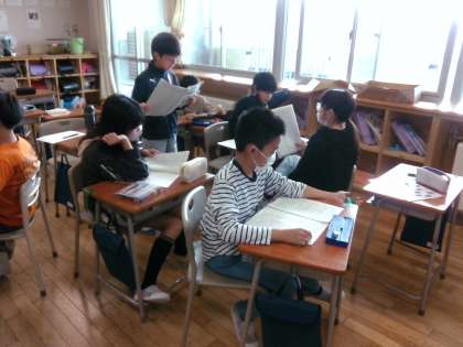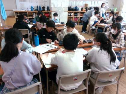 宿泊に向けて班ごとに集まり、役割や自分たちの目当て等を確認しました。明日の宿泊が楽しみです。