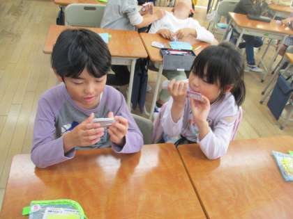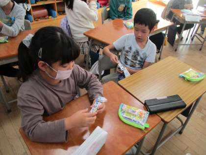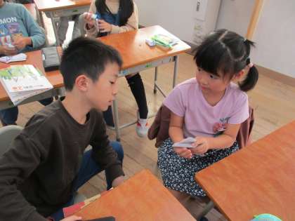 算数の学習では、かけ算の問題に取り組みました。授業の終わりには九九カードを用いてペアで九九の練習も行いました。学校や家で練習を続けてほしいです!