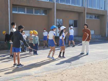 外遊びでは、6年生さんと一緒にドッジボール、長なわとび、こおりおに等をしました。子供たちは、優しく声をかけてくれた6年生さんに「また遊びたい」「何かお返しをしたいな」と言っていました。