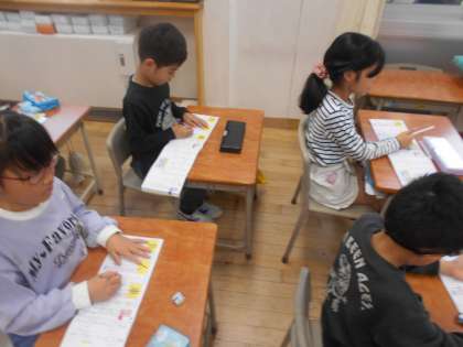 書くときは良い姿勢に気を付けて、綺麗に書けるように頑張っていました。