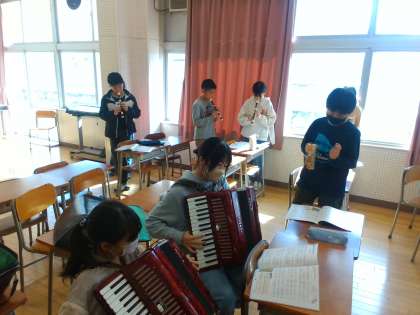 2つのグループに分かれて、「キリマンジャロ」の合奏の練習をしています。