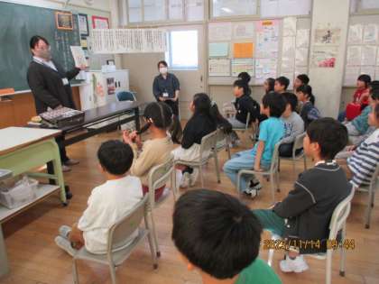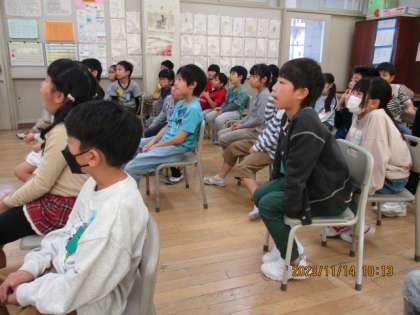 4組の様子です。図書館の方の読み聞かせを真剣に聞いています。