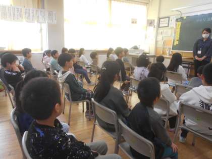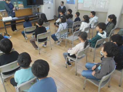 富山市立図書館藤ノ木分館の方が学校で読み聞かせをしてくださいました。テーマは「いろいろな穴」で、そのテーマに合った本をたくさん読んでいただきました。