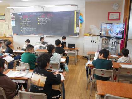 グループ毎に分かれてつくったニュース番組や新聞記事を発表しました。テレビの番組を制作した子供たちは、自分たちで動画を編集しました。その完成度の高さに、子供たちから歓声があがりました。