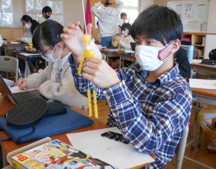 図画工作科では、未来の自分をイメージした立体作品を作っています。