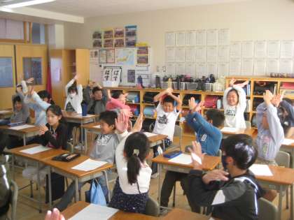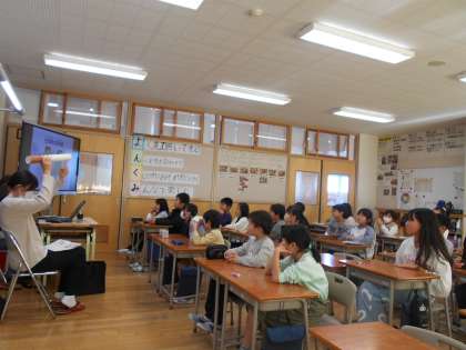 4〜6組に保健福祉センターの方をお招きして、いきいき健康教室を行いました。喫煙の体への悪影響について知り、成長や健康への意識を高めました。