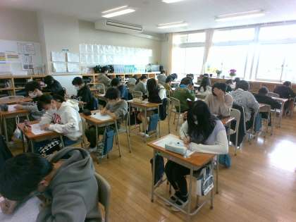 家庭学習パワーアップ週間がスタートしました。学習したことを思い出しながら真剣にテストに取り組んでいます。