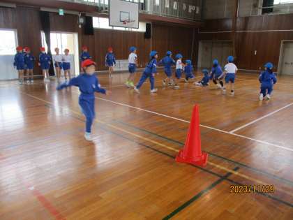 体育科の時間に、ハンドベースボールをしました。ボールを投げる場所を考えたり、守りの位置を考えたりしながら、ゲームを楽しんでいました。