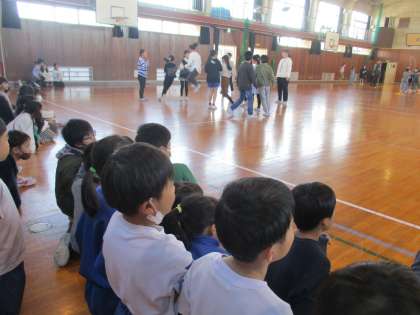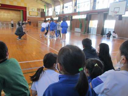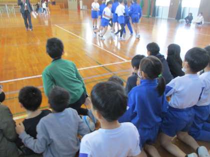 今日は、休み時間に行われている4,5年生のなわとび練習の様子を見学させてもらいました。縄を回す人と跳ぶ人のそれぞれが役割を果たし、ものすごい速さの縄の中でも瞬時に跳ぶ姿を見て、びっくりしていました。「いつか自分たちもあんな風に跳びたい!」と思った子もいたようです。