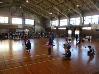今日は、1・2年生の短縄跳びチャンピオン大会が行われました。各クラス代表者1名が出場し、学年1位を目指して頑張りました。たくさんの応援を前にして少し緊張気味でしたが、一人一人が全力で取り組んでいました。