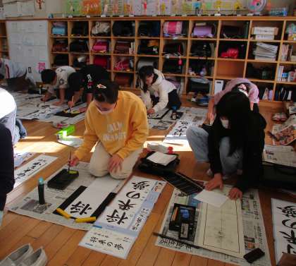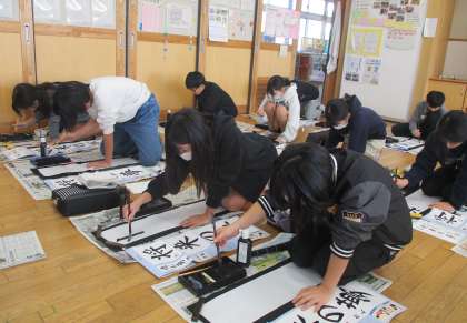 心を落ち着かせて取り組んでいます。一字一字丁寧に書いている姿がとても素敵でした。