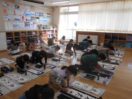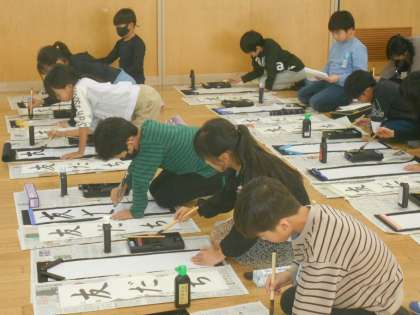 書初め練習では、初めて大きな紙に書きました。一つ一つの文字のバランスを考えて、ゆっくり、丁寧に取り組んでいました。