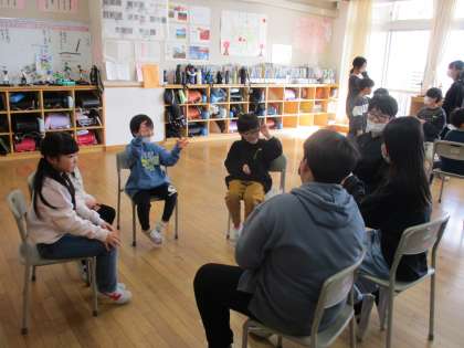 国語科「みんなが楽しく過ごすために」の学習で話し合ったことをもとに、1年生さんと交流しました。6年生、1年生ともに楽しく過ごせるようにグループで話し合ったのですが、交流してみるとうまくいかないこともあり、苦戦しているようでした。交流後は、「1年生さんが笑顔になってくれたのがよかった」「もっと、6年生が積極的に話しかけるべきだった」「1年生さんのことをもっと知っておくべきだった」等よかった点や改善点などを振り返りました。次回に生かせるといいですね。