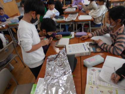 粘土やアルミホイルの形を変えてそれぞれの重さを比べました。物は形を変えても重さが変わらないことが分かりました。