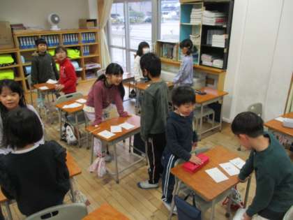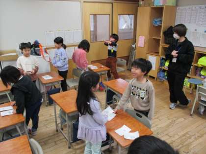 各自がカードを作り、お店屋さんとお客さんに分かれてやりとりをしました。