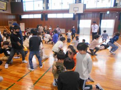 進化ゲーム3年生バージョンはじゃんけんで勝つごとに、三つ葉、ホウセンカ、エーデルワイス、ひまわりに変化するゲームです。みんなで仲良く楽しみました。