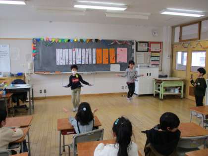 2学期を振り返りながら、フルーツバスケットや〇×クイズ、縄跳びリレー等を計画し、みんなで仲良く楽しみました。