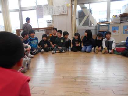 「ばくだんゲーム」、「ハンカチ落とし」など、楽しいゲームをしました。BGMで流したクリスマスソングを「もうすぐクリスマスだね」と言いながら、みんなで歌いました。
