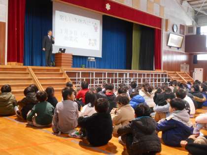 終業式では、2学期にがんばったことを振り返りながら、真剣に校長先生の話を聞いていました。