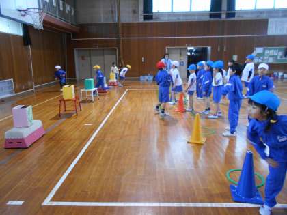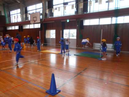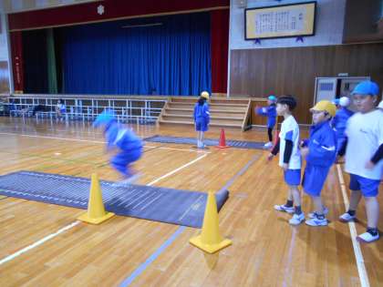 わざ7の中の、わざ2「跳ぶ」運動と、わざ3「投げる」運動に取り組みました。それぞれのコーナーで、順番を守ったりポールを押さえたりして協力して運動しました。何度も挑戦して「先生、クリアできたよ」と嬉しそうに報告する子供もいました。