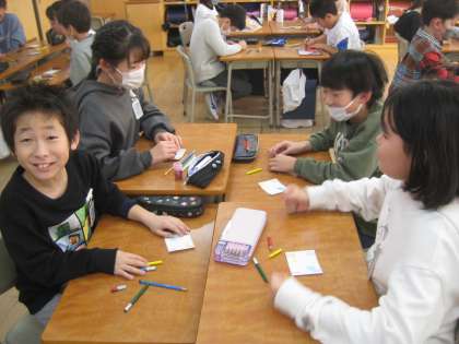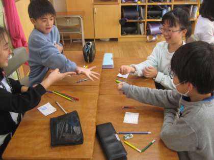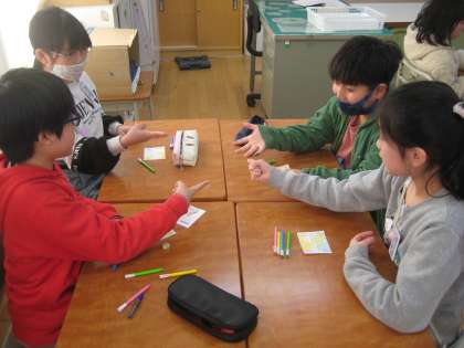 4人グループで、陣取りゲームをしました。一番広い陣地を取ったのは誰なのか、正方形をもとに考えました。