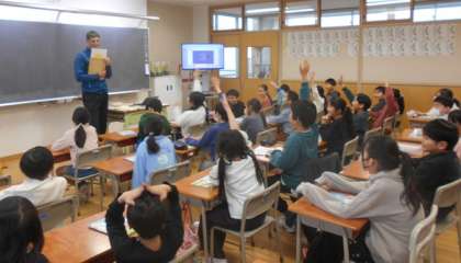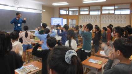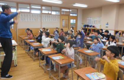 What's this ? の学習では、ジェスチャーを交えて発音したり、クイズを通して物の名前を答えたりして、英語に慣れ親しみました。
