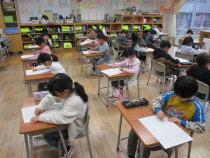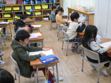 初めての計算チャレンジテストに取り組みました。冬休みにたくさん練習してきた成果を発揮しようと、真剣な表情でがんばっていました。