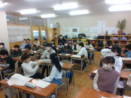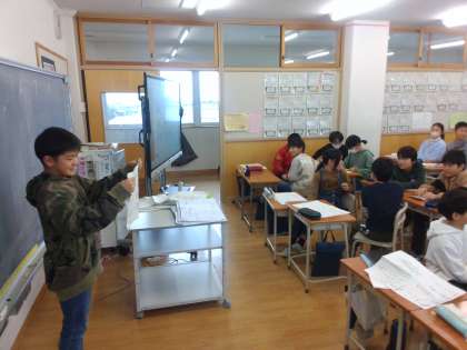 方言と共通語の学習をしました。今日は、調べた方言を使ってクイズを作り、出題しました。子供たちはあまり聞き慣れない方言に驚いていました。