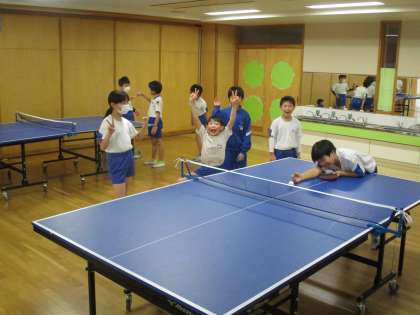 体育科のネット型ゲームで、卓球を行っています。初めて経験した子供も多いですが、球を打つ爽快感がとても気持ちよさそうでした。