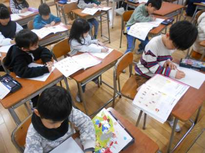 音楽科の学習では、「さんちゃんが」や「おちゃらかほい」等の童歌を聴いたり歌ったりして遊びました。