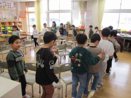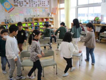 藤っ子タイムに係活動でゲーム係が計画した「いす取りゲーム」をしました。ルールを守って仲良く楽しみました。