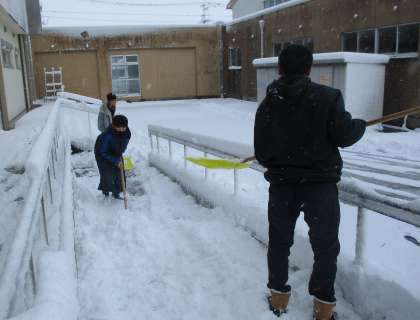雪かきをしました。最高学年として全校のために取り組もうとする前向きな気持ちがすてきでした。
