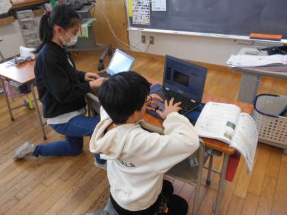学習参観の準備をしています。今までの学習で学んだことを、発表の仕方を考えながら準備を進めています。