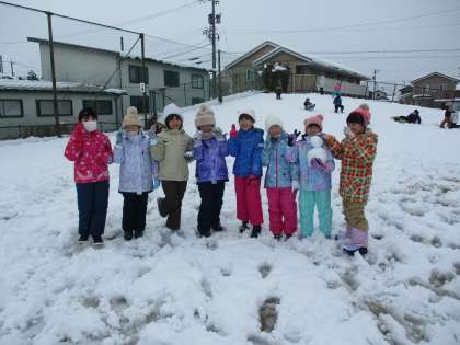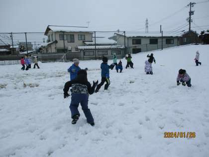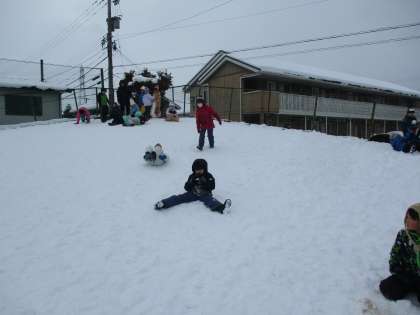 雪合戦をしたり、築山を滑ったりして楽しみました。