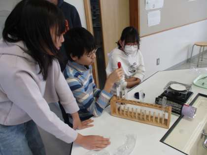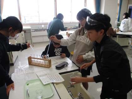 理科の学習では色々な水溶液の違いを調べました。蒸発させたりにおいをかいだりするなど、様々な実験をして違いを確かめました。