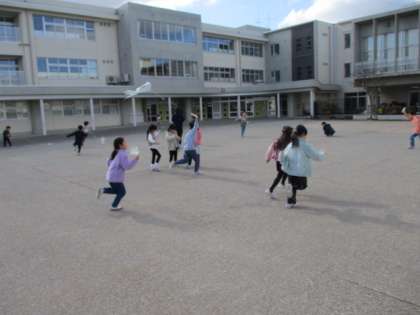 生活科「かぜとあそぼう」では、たこあげやかざぐるま等を作りました。晴れた日に作ったおもちゃで楽しく遊びました。