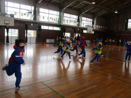 4年生の体育科では、ネット型ゲームに続きゴール型ゲームに取り組んでいます。アメリカンフットボールのようにボールを敵陣地に運んだり、バスケットゴールにシュートをしたりと、いろいろな動きを組み合わせて楽しんでいます。
