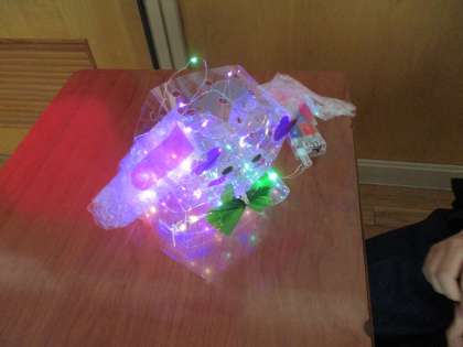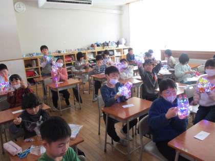 図画工作で「クリスタルアニマル」を作りました。今日は、最後の仕上げをし、完成した作品をみんなで鑑賞しました。すてきな動物たちが、きらきらと光っていました。
