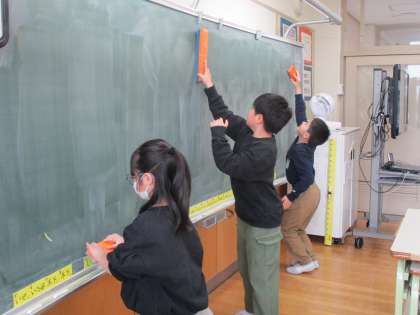 学級のみんなを楽しませたい、助けたいという気持ちにあふれた活動や姿がたくさん見られます。一人で黒板消しをしていて大変そうな友達を見付けて、「大丈夫?手伝うよ」と言って一緒に活動する人。友達の喜ぶ笑顔を想像しながら、塗り絵の準備をする人。おみくじを引いてもらい「あたり」を出した友達と一緒に喜び合う人。仲間のために毎日頑張っている子供たちです。