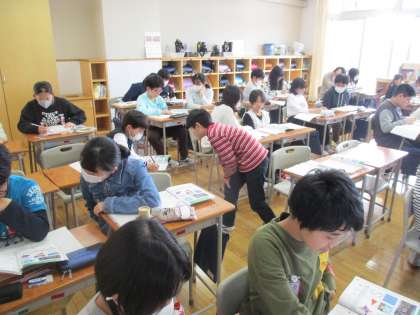 様々な図形を仲間分けしました。その図形を仲間分けした理由や辺や角度の特徴を考え、友達と相談し、線対称な図形について理解を深めました。